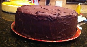 Pie number 52 was something I couldn’t think of a good name for. So I asked my friends on that-social-network-thing for a name and gave them the description; a cherry pie baked inside a chocolate cake and frosted with a semi-sweet chocolate and sour cream frosting. I got some good names and umm, some abstract. I decided to go with The Cherry Bomb. It has a nice ring to it. Thanks Heidi.
